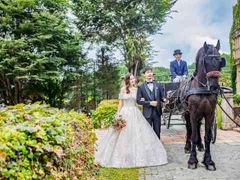 重厚な石造りの城を背景に、クラシカルな馬車が特別な一日を彩ります。豊かな緑に囲まれた敷地内を巡る時間は、まるでおとぎ話の世界に迷い込んだかのよう。ゲストの注目を集める華やかな入場演出や、映画のワンシーンのような記念撮影など、ここだけでしか味わえない優雅な体験がお二人を待っています