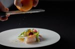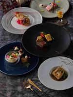 和の食材にこだわった『フレンチジャポネ』 鰻、鮑、金目鯛などの和の食材をはじめ、山葵、味噌、吟醸酒などの馴染み深い調味料など、日本人ならではの感性を活かし、おもてなしの心を百の彩りで演出。新郎新婦の想いを汲み取り、ゲストに心から喜んでいただけるお料理をプロデュース。