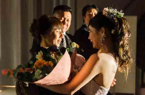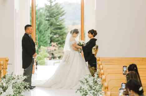 入場時のバージンロードは『ご誕生からこれまでの人生を表している』と言われています。ご誕生を心から喜んでくださったご両親、幼い頃の身支度を思い返していただきながら行うベールダウン、ご家族代表でお父様にエスコートいただき、ご新婦様はご新郎様と出逢います。このストーリーをぜひ皆さまにもお伝えしたい、とご新婦様の入場直前に、シーンの意味をお伝えするコメントを入れました。