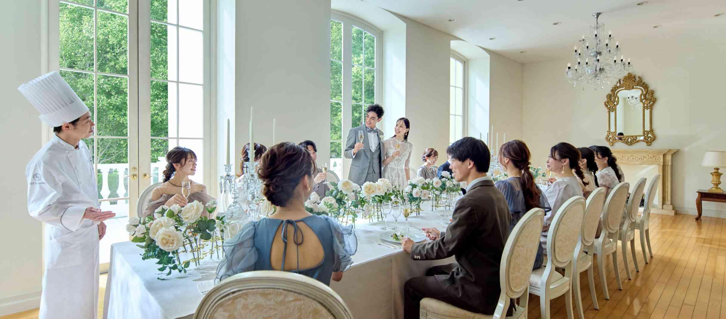 結婚式を語る上で欠かせないお料理でのおもてなし。幅広い年齢層のゲストに楽しんでいただける食材からこだわったアートグレイスオリジナルコース。お箸でも食べられるゆおに特別なフレンチでもてなして。