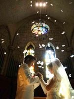 ベルヴィのチャペル挙式と言えば羽の演出。 お二人だけにスポットライトが当たり、羽が舞い降りてくるシーンはゲストの心にも残るはず。