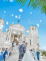 感動的な挙式の後は笑顔溢れるフラワーシャワーの時間!まるで海外ウエディングのように鐘が鳴り響く中、大階段をおりるおふたりは主役のようなワンシーンに!皆様の笑顔に包まれてお好きな音楽を流して素敵なシーンに。そのあとは皆様で全員集合写真やブーケトスの演出なども。