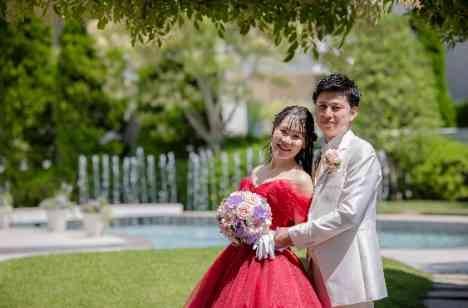 あたたかい挙式のあとはご披露宴のスタート!そこではマリブ邸ならではの演出が。おふたりが扉からご入場後メイン席までお進みいただき、司会のアナウンスとご一礼のあとにカーテンが開きなんと大きな噴水がお二人の音楽に合わせてあがります!噴水の演出にゲストも「おお!」と歓声ががあがりまさにお写真映え♪こんな演出見たことないとおふたりのご入場に華を沿えるだけでなく、ゲストも大変喜んでいただけたご入場方法でした。