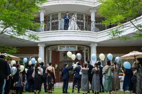 ビバリーヒルズ邸はまさかの2階建ての貸切一軒家。「おふたりのお家にゲストをお招きする」がコンセプトの当館だからこそ2階建ては他に無い雰囲気。そんな会場を活かしたおふたりは挙式後のご披露宴登場シーンでは2階から登場!まさかの登場シーンにゲストも驚いておりました。貸切ガーデン付きの邸宅だからこそガーデンではバルーンリリースの演出で更に一体感が生まれておりました。