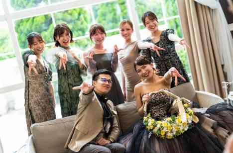 ゲストと楽しく距離感近く過ごしたいとお考えでしたおふたりはご披露宴もソファメインで、ゲストと話しやすく♪距離感近いレイアウトにしたからこそゲストもおふたりとお写真を残したいとおふたりの周りには終始ゲストがいらっしゃいました。ご結婚式は特別な1日だからこそお写真を沢山残してもらうのが当館のおすすめです。