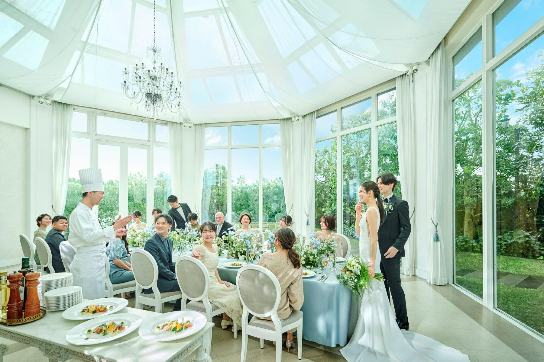 \2名~OK/海辺の別荘をイメージしてつくられた【ブルードア】と絶好のロケーションを臨むテラス付会場【マザーズテラス】の2つから選べる少人数専用会場をご用意。プライベートな空間でのアットホームな時間に