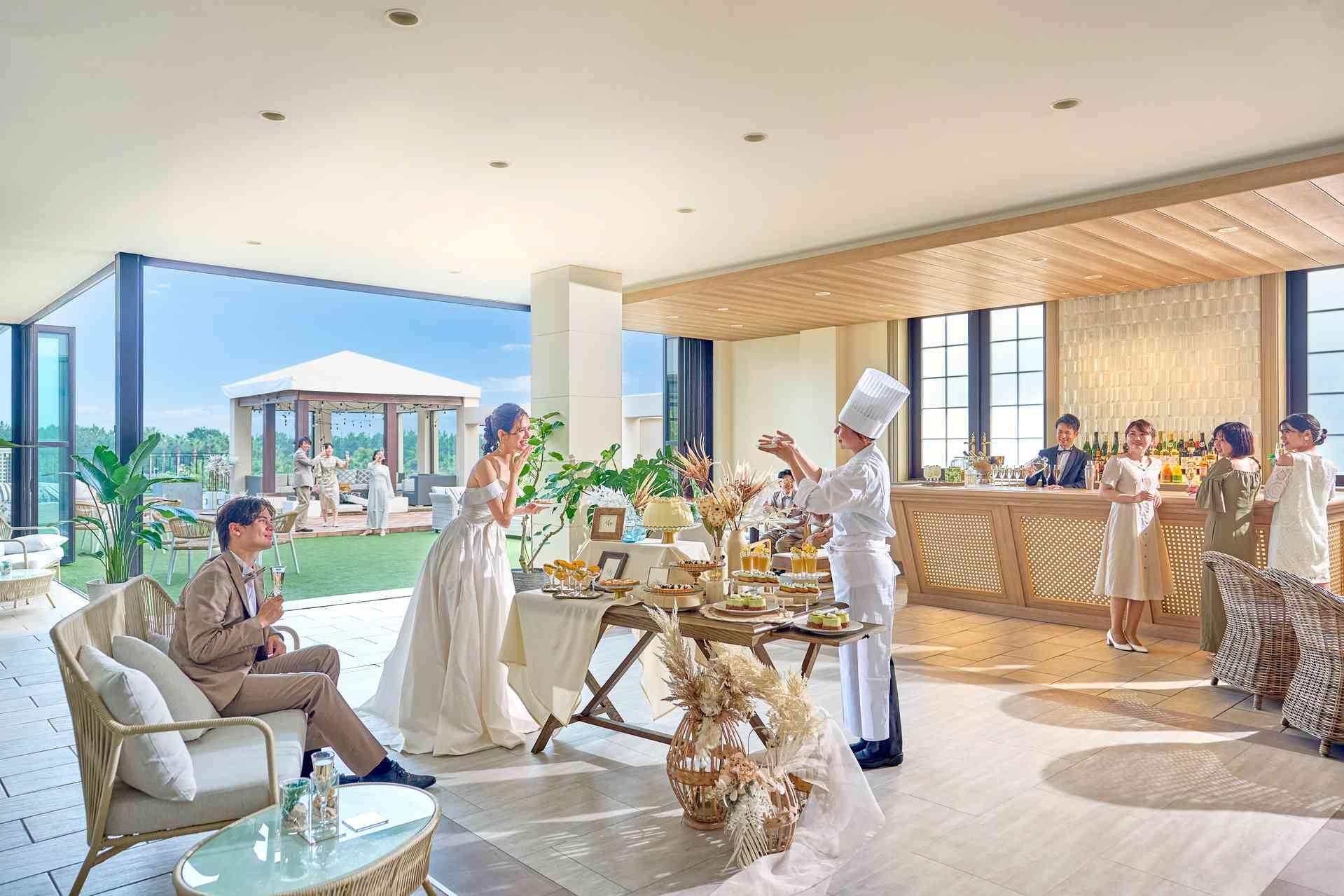 【20名~114名】千葉で最も新しい披露宴会場が誕生!ハワイアンWをテーマとした他にはない空間。会場には備え付けのオープンキッチン&バーカウンター付き。屋内ですごせるハワイアンリゾートWを