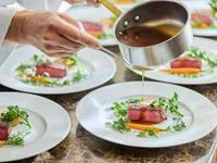 【2025年9月少人数専用会場がGRAND OPEN!】2名~40名専用会場。海や空の絶景ロケーションを眺めながらゆったりとお食事をお愉しみいただける少人数専用会場が誕生。オープンキッチンも併設のためシェフが目の前でお料理を仕上げる。
