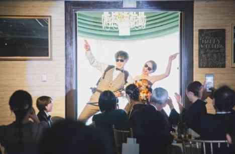 再入場は投票制で行い、ご新郎様のゲストには「何をしながら入場するか」、ご新婦様のゲストには「何色のブーケを持って入場するか」を予想していただきました。正解は、ビールサーバーを背負ったご新郎様とオレンジ色のブーケを持ったご新婦様!正解された方、おめでとうございました。会場は大盛り上がりで、一気にテンションが上りました。