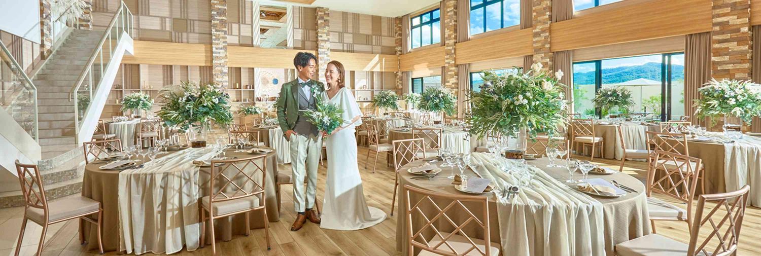 全天候型×空と山の景色自由度の高い人前式や和装挙式も対応
