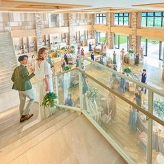 ◆自然光に包まれたチャペル◆天然木や石の自然素材からなる温かみのあるチャペル。ガラス越しから見える空の景色は挙式ごとに変化してお二人だけの結婚式を祝福します。感動に満ちた挙式入場シーンを体感!