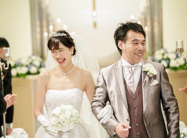 挙式の衣装は、新婦が一目惚れしたマーガレットの刺繍が入ったウエディングドレス、新郎にはすべて白一色にならないよう、シルバーブラウンの珍しい色のタキシードを着てもらいました。試着した中で1番似合っており、家族からも好評でした。