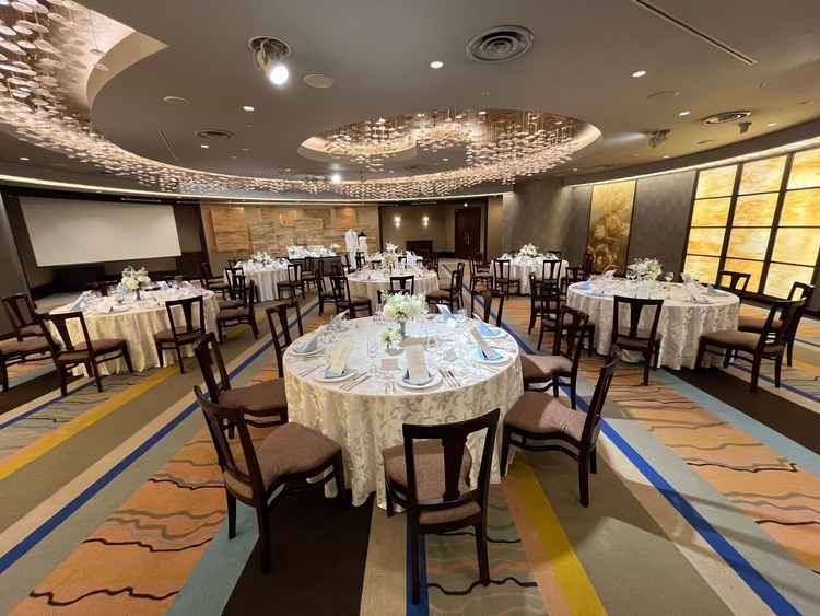 大階段と、天井にある天の川をイメージした照明はすごくよかった。 チャペルの雰囲気や演出も好みだった。 また20階の披露宴会場は、大きな窓があり部屋に入った瞬間に開放感があった。