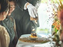 パスタ料理をご提供の際には、サービスマンが一席づつを回り、その場でトリュフを削る「トリュフ演出」が人気です。イタリア産のトリュフは香りが良く、芳醇な香りが会場いっぱいに広がります。 -