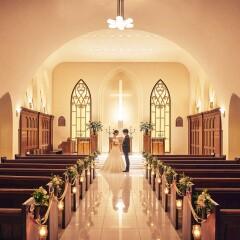 【教会口コミ1位受賞】天井高6m、90名着席可能な白亜の空間には「本物」のキャンドル・大理石のバージンロードを設え、専任牧師が贈る家族との繋がりを強く感じさせてくれる挙式は、ゲストの心にも強く刻まれる