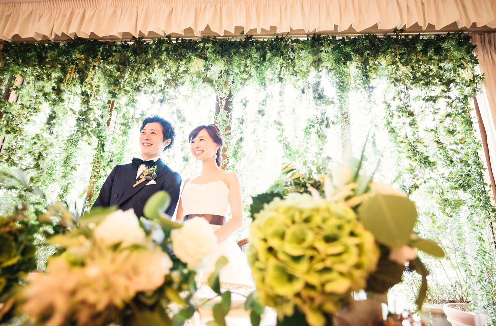 お洒落好きのお二人がご希望されたテーマは「ナチュラル&シャビー」 教会とレストラン会場どちらの装飾もこだわってご準備を進めて下さいました。 お二人のイメージ通り、会場は沢山の緑に囲まれたお洒落な雰囲気に!! 一軒まるごと貸切のレストランだからこそ実現できた装飾にゲストからも「素敵☆」と大好評でした。