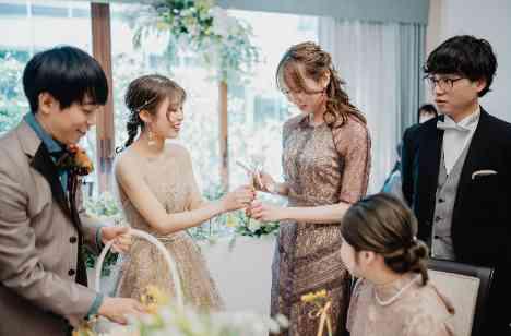 「ゲストと一緒に過ごす時間を大切にしたい」とお話いただいていたおふたり。各卓ラウンドではゲスト1人1人にお花をプレゼントしながら、会話を愉しまれました。「どの色のお花がいい?」など声を掛けながら、お互いの友人を紹介したり、親族と気兼ねなく写真を撮ったりと、普段と変わらないおふたりらしい姿でゲストと特別なひと時を過ごされました。