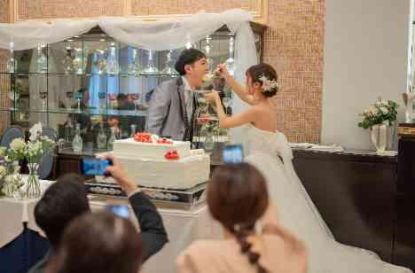 ご歓談中には、新郎様のご趣味のカメラを手に持たれ、ゲストの方の笑顔を撮影しながらのテーブルラウンド。 大切なゲストの方のお写真をたくさん残したい。そんな素敵な演出でした! ご結婚式のあと少し経って 披露宴の思い出がたくさん詰まったレストランへお食事にお越しくださったおふたり。 ご注文されたアルバムや映像を見ていただきながら当日を思いだされて「本当に楽しかったです!」と仰ってくださいました。