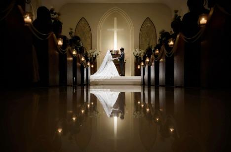 専任牧師が事前カウンセリングを行い、一組一組に向けた祝福の言葉を贈る挙式。 一つひとつの意味をふまえて臨む、本質を大切にしたセレモニーをゲストの皆様に囲まれて行います。 両家の親族も参加するユニティキャンドルの儀式や、専属牧師から贈られる唯一無二の温かなメッセージが、育った家庭と新たな家庭を結んでくれる感動的な瞬間です。