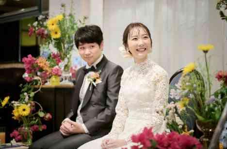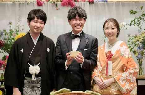 ご披露宴でのお色直しは、ドレスではなく色打掛と紋付を着てご入場。鮮やかな色打掛の色味が会場装花とも合っておりとても素敵でした…♡ その後は大きな木槌を使った鏡開きの演出! そして新郎様の学生時代にアルバイトで共に働いた大好きな友人をメインテーブルへお呼びして、日本酒を振る舞うサプライズもあり会場中が盛り上がりました!