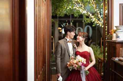 お色直しでは、新婦様の大好きな"赤"のカラードレスでご登場!ゲストの皆様にはサインライトでおふたりの再入場を盛り上げていただきました♪午後のご結婚式だったので、再入場の頃にはサインライトの光が映える時間帯に。パーティ後にはイルミネーションの撮影で、赤のカラードレスがキラキラ輝く、とっても素敵なお写真が撮影できました!