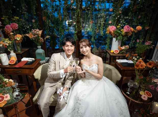 ゲストの皆様と一緒に楽しめるように、たくさんの準備をされてきたおふたり。会場内は入った瞬間から楽しさが伝わるビタミンカラーのコーディネート♪テーブルにはグレープフルーツやオレンジが飾られ、元気で明るい雰囲気に。フローリストお任せで、おふたりの人柄やパーティイメージにあわせてご提案させていただいたコーディネート。おふたりもとっても気に入ってくださいました!