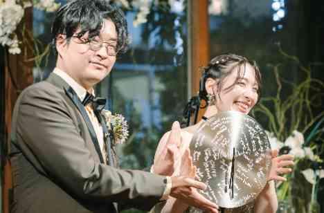 ゲストの皆様にもご協力いただき、おふたりの大切な1日の思い出をカタチにしました!ひとりひとりにお名前を書いていただき、パーティの中でおふたりもお名前を書いて完成!ご結婚式の思い出がつまった、大切なアイテムとなりました。大切な皆様に集まっていただいた記念に、カタチに残るものを一緒につくるのも素敵ですね。