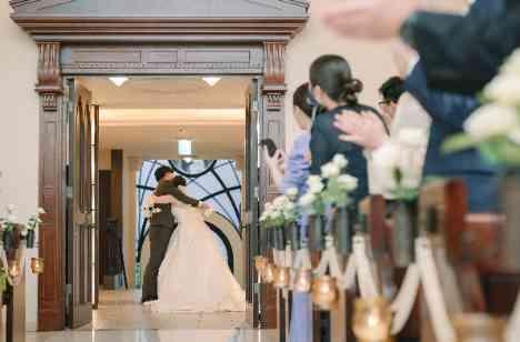 新郎様はオーダータキシード、新婦様はチャペルに似合う衣裳にこだわって選んだウエディングドレス。南青山ル・アンジェ教会の礼拝堂におふたりの衣裳姿がとても綺麗に映える挙式となりました。指輪の交換では、お手伝いいただいたお子様ゲストの頑張る姿に新婦様の目には涙が…。退場の扉が閉まる瞬間のクロージングハグにとても心あたたまる挙式の時間になりました。