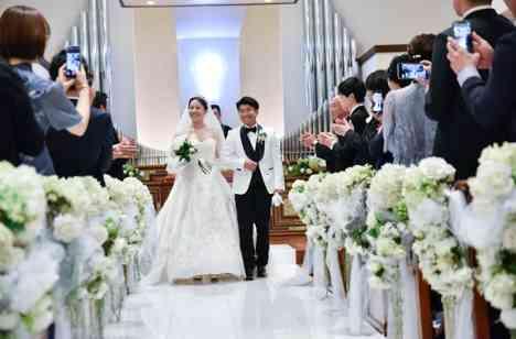 ゲストの皆様とは、特別な空間にしつつも、過ごしやすく温かみのある雰囲気にしたいと考え、テーブルにはかすみ草を配置し、背の高い木を飾りました。また、ゲストの皆様との歓談の時間を多く取りたいと考えていたため、演目をなるべく少なくしました。そのため、式が終わってみれば一瞬だったなと感じましたが、式中は、あわただしく感じることはなく、ゆったりと時間が流れている感覚でした。