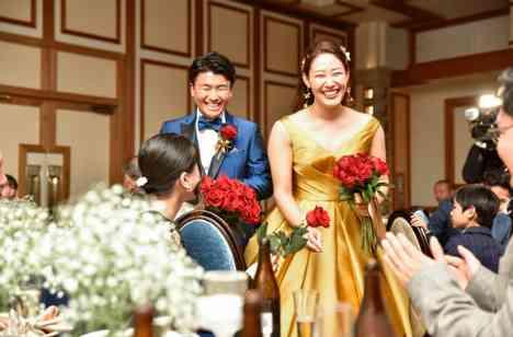私たちの望みでもあった歓談の時間を長くすることにより、大切なゲストとの時間をたっぷり共有することができました。また、中座ではそれぞれ家族と退出をし、いままでの情景を思い浮かべながら、皆様に見守られながら、特別な空間を味わうことができて、感無量でした。最後に、高砂からの景色は何度思い返しても、今後見られることのない、唯一無二の幸せにあふれている素敵な光景でした。
