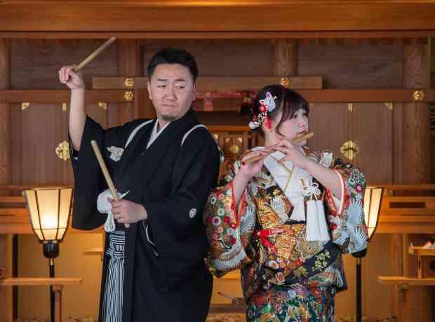 新郎新婦が奏でる笛の音♪太鼓の音♪