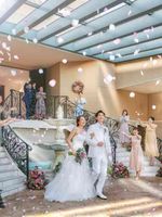 挙式後は大聖堂の前に広がる全天候型アトリウムへ。噴水が輝く開放的な空間で、天候を気にせずフラワーシャワーやバルーンリリースが楽しめます。爽やかな風を感じながら、ゲストからの祝福を間近に感じる幸せなひとときは、お二人にとって一生の宝物に。全天候型なので、雨の日でも憧れのガーデン演出が叶います。
