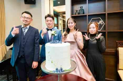 打ち合わせ当初より、おふたりのご縁を繋いでくださったご夫婦へ感謝の気持ちを伝える場を設けたい!と仰っていた新郎新婦様。そこで当日行ったのはケーキ入刀後に、サプライズでの「サンクスバイト」新郎新婦ともに親交の深いご夫婦だからこそ、今日の日をおふたりと同様に特別な想いで迎えていただいたことと思います。新郎新婦様からのサプライズ演出は、幸せが溢れる瞬間となりました。