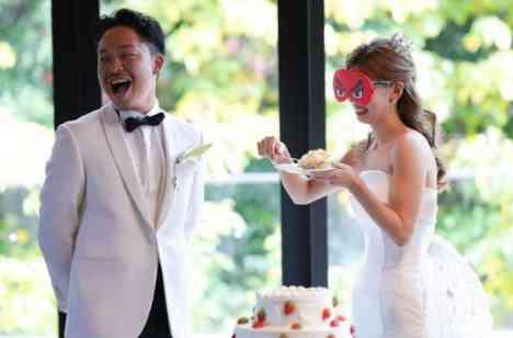 「とにかくみんなが楽しめる結婚式」になるように とにかくゲストへのサプライズをたくさん詰め込みました プレミアムブッフェは実際に試食した際に美味しかったケーキや茶そば、お茶漬けなどを入れてもらい皆様から好評でした ケーキバイトの際、普通では物足りないので目隠しをしてゲストの方も参加型でさせていただきました! 和装での入場はスモークを使っての演出を行いサプライズ登場ができてとてもよかったです