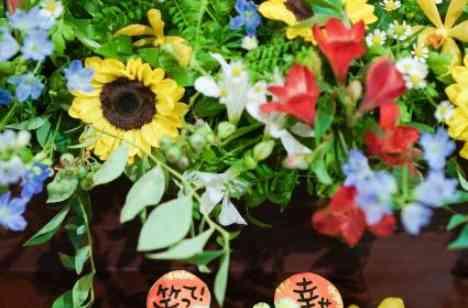 2つあります。 1つ目はケーキ!!! スニーカーが大好きなので、どうしてもスニーカーをモチーフにしたケーキを作りたくて、たくさん候補を考えました。 2つ目はお花!!! ひまわりとアルストロメリアを入れたくて綺麗に見えるように考えてもらいました。 当日めちゃくちゃかわいくして頂いて気持ちがずっとウキウキしていました。