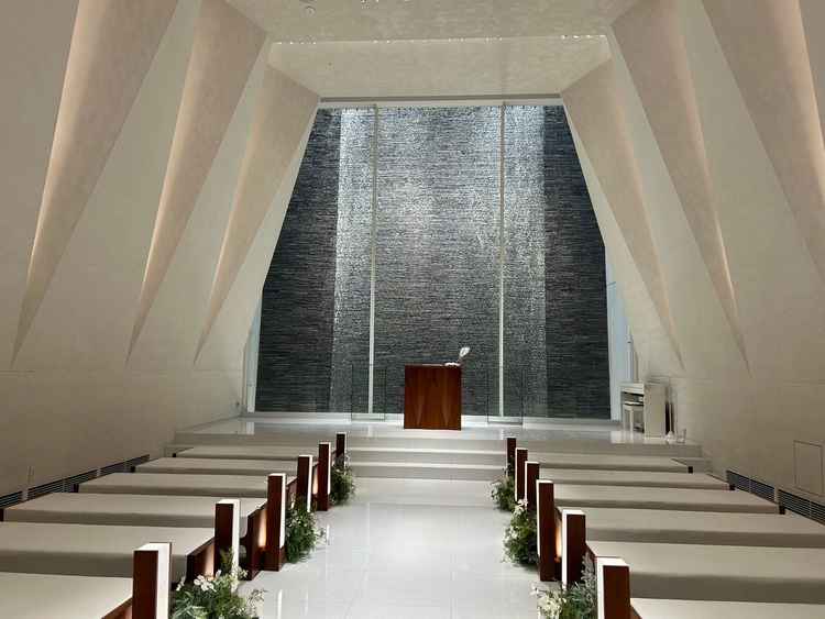 和と洋どちらにもあう雰囲気。チャペルは地下にあるとは思えない明るさで、オフホワイトの天井の高いチャペルで写真もとてもきれいに撮れました。