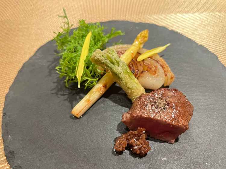 お肉を少しいただきましたが、全体像はよく分かりませんでした。給仕してくださったかたは黒毛和牛だとおっしゃっており、プランナーさんは国産牛とおっしゃっていたのでどちらが正しいか分かりませんでした。