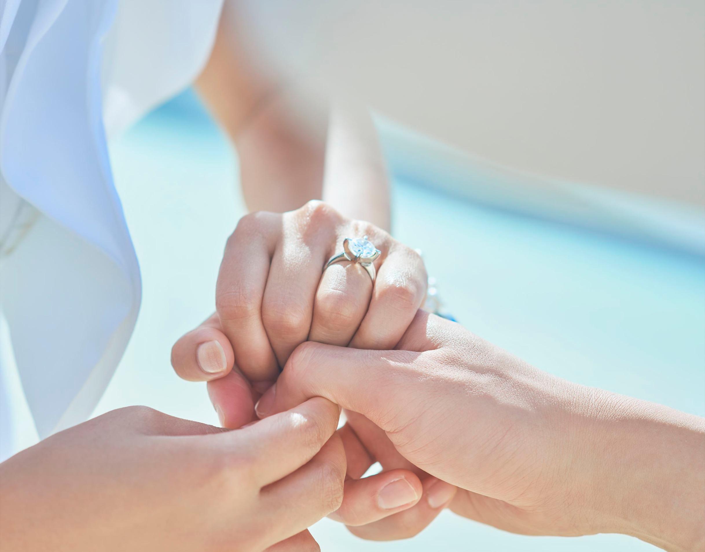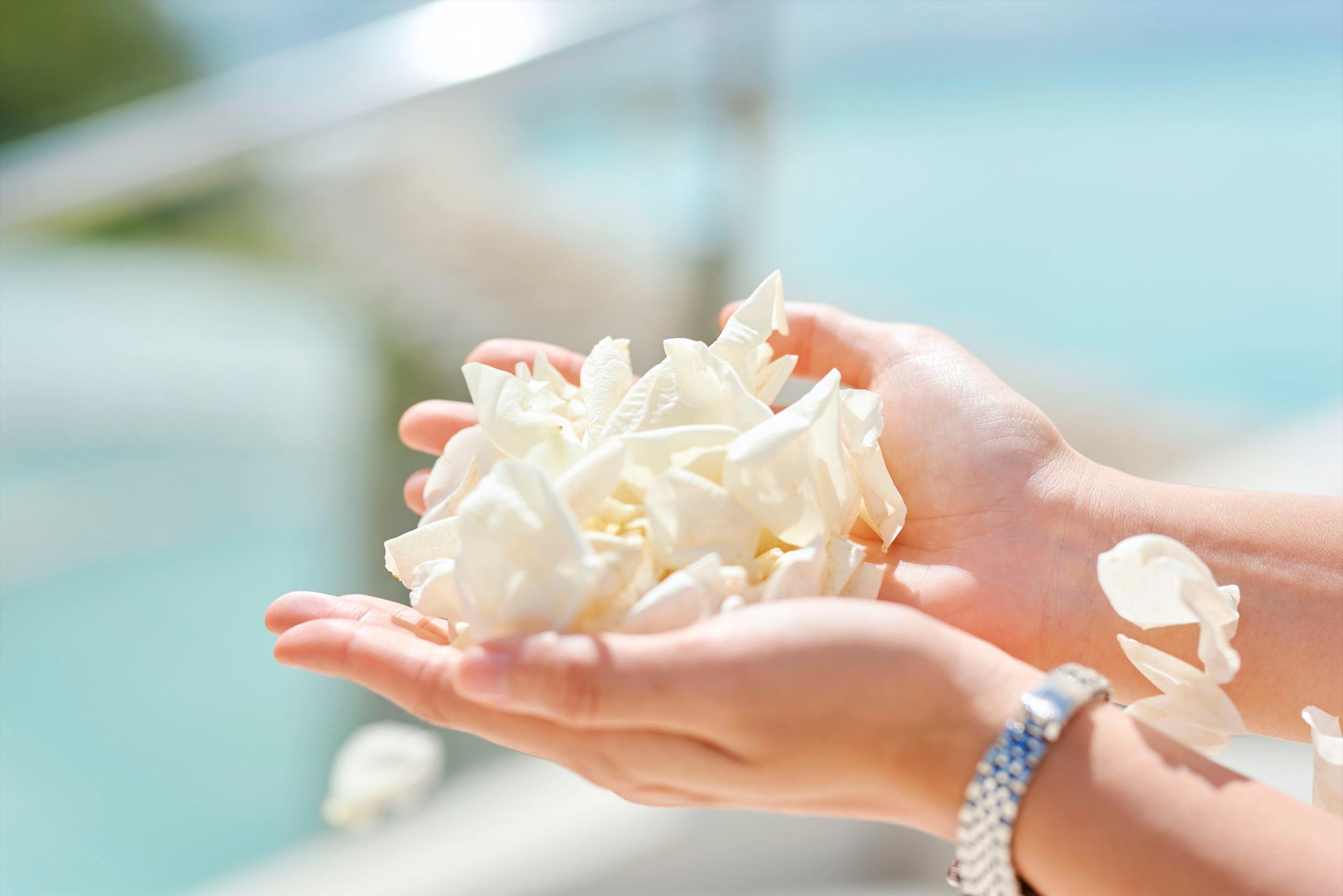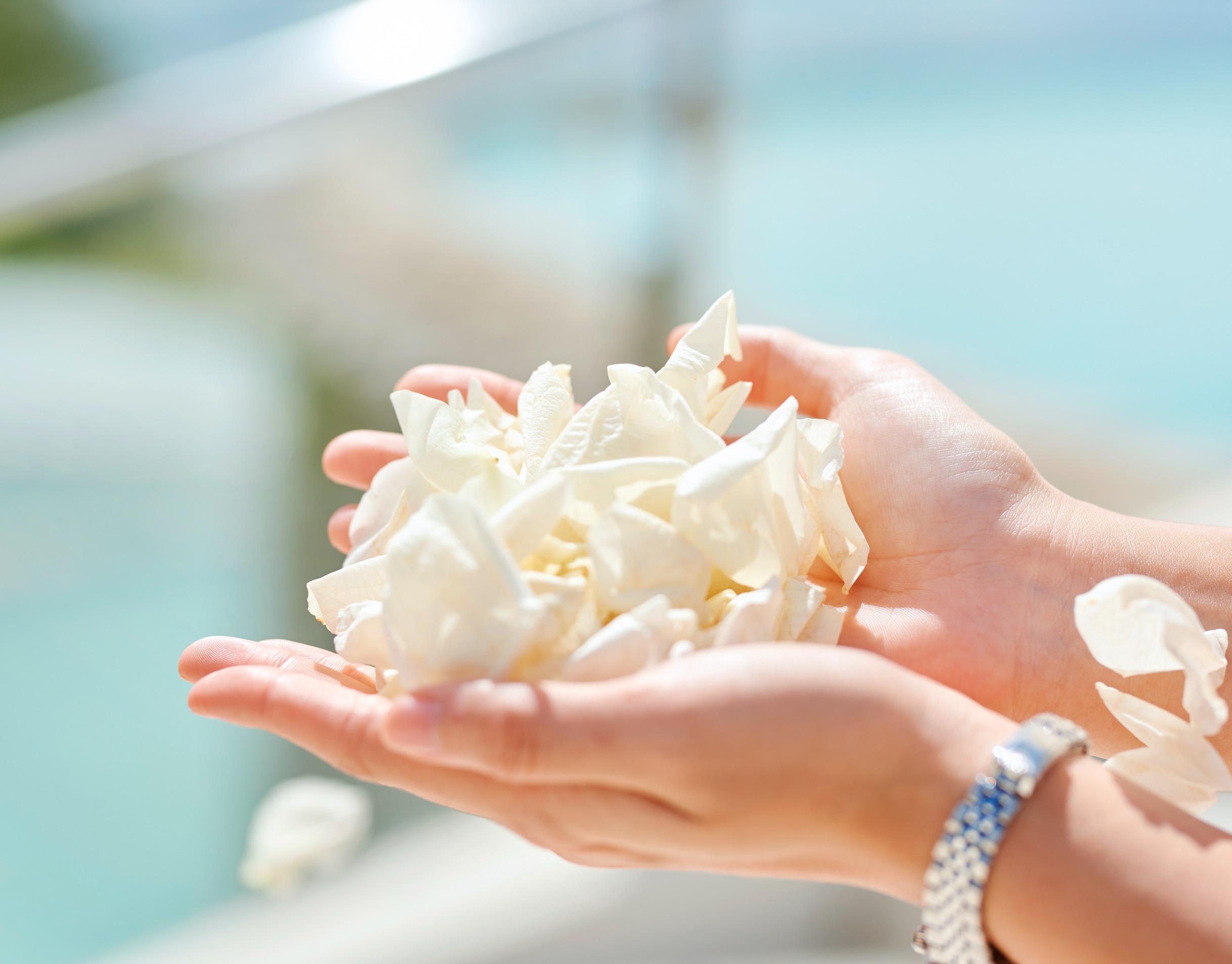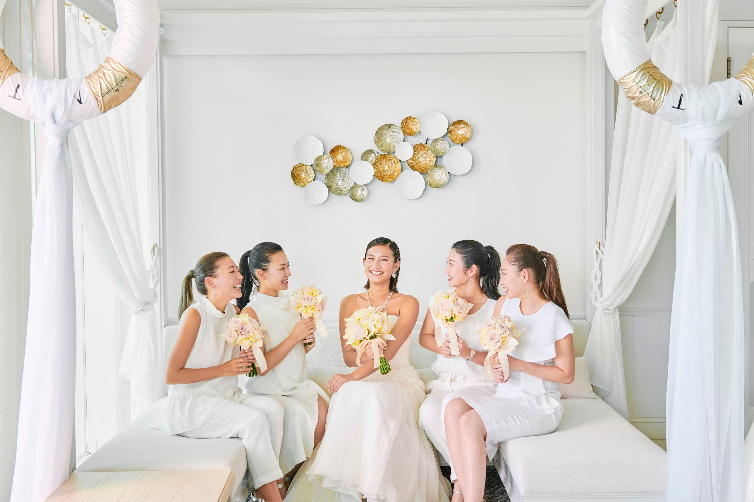 セレモニーの余韻をまといながら、海と空がひとつに溶け合う場所へ。ここでは開放感と心地よさに満たされ、いつもより素直なおふたりになれるはず。誓いを交わした嬉しさと幸福感、すべてをそのまま写真に残して。