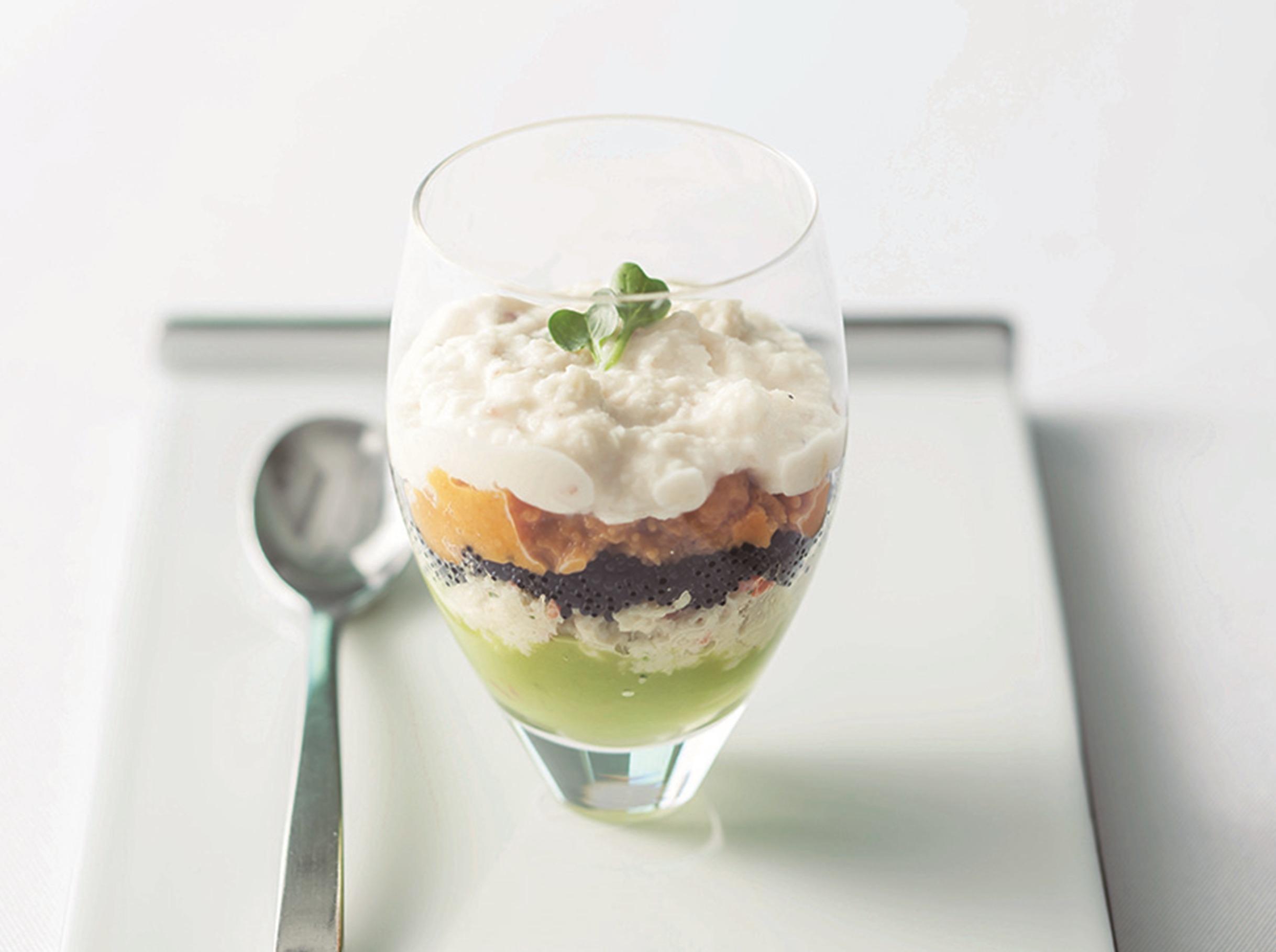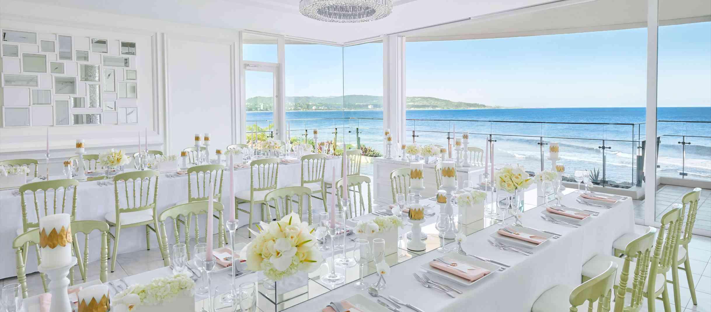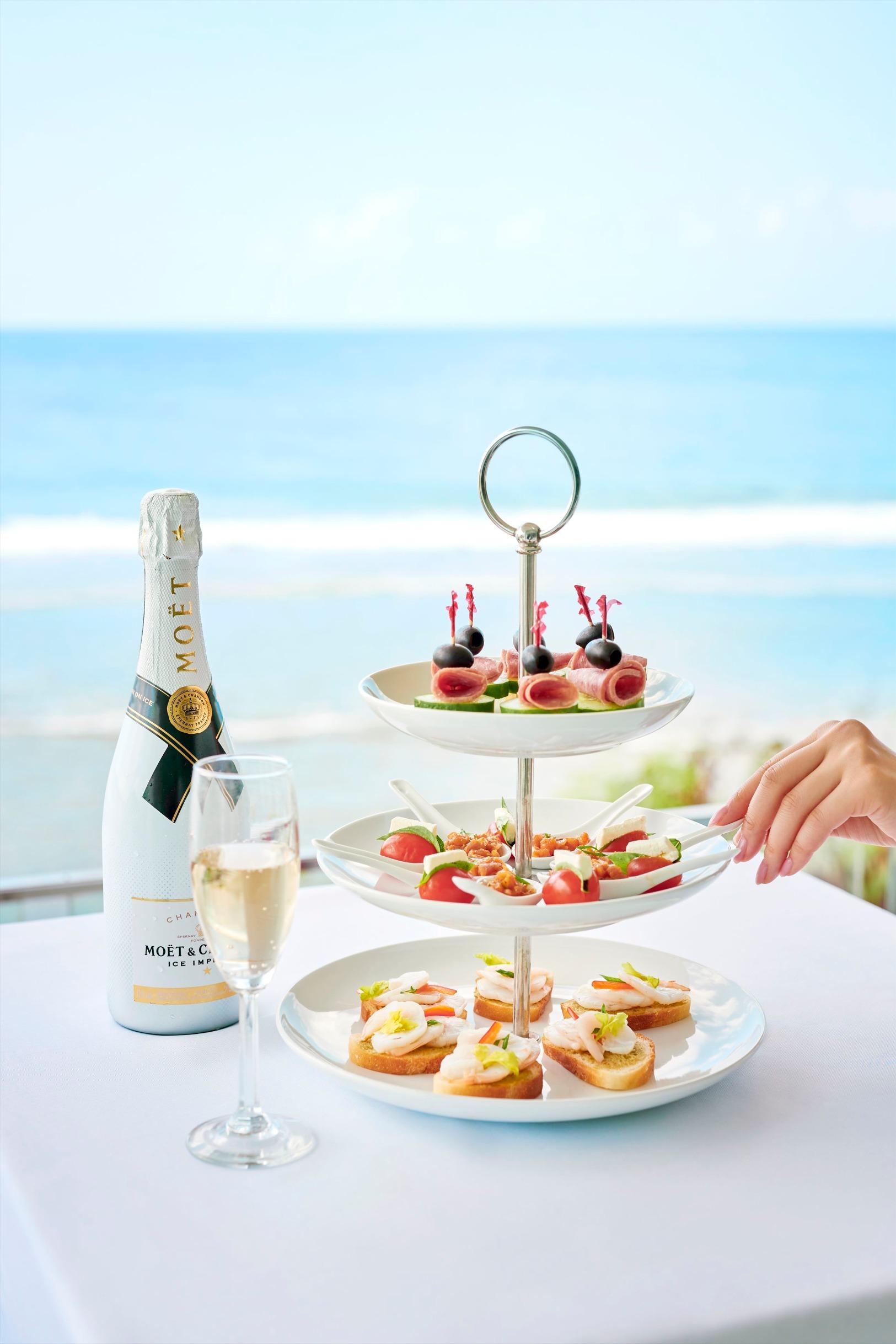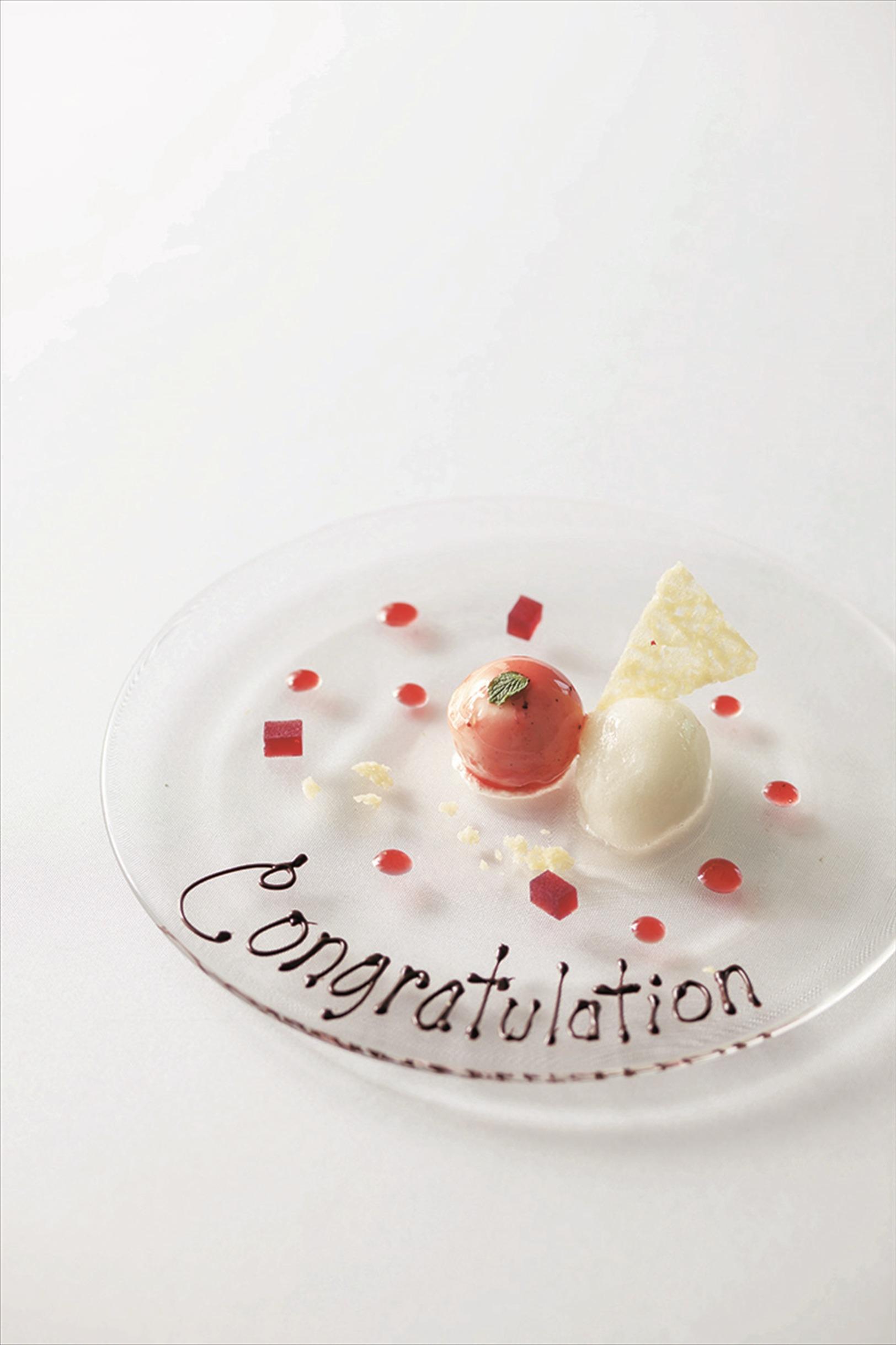 非日常的な景観と祝福のシャンパン“モエ・エ・シャンドン”を美味しく味わうための特別なお料理を堪能できるバンケット。気持ちの良いオープンテラスでは、ケーキカットや写真撮影を楽しんで。