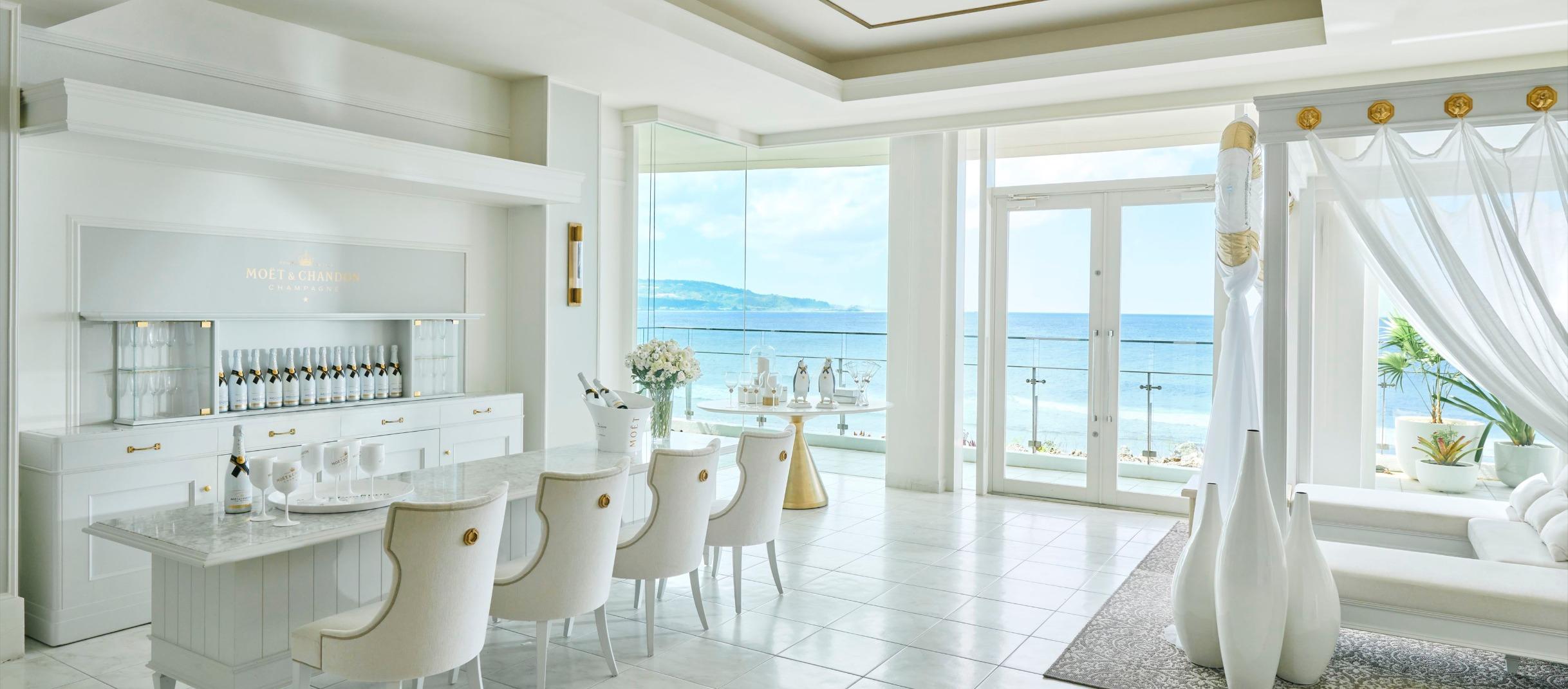 一流メゾン“モエ・エ・シャンドン”とコラボレーションしたラグジュアリーなラウンジで、洗練されたパーティ前のひとときを。ウェルカムシャンパンを手に、会話や写真撮影を思い思いに楽しんで。