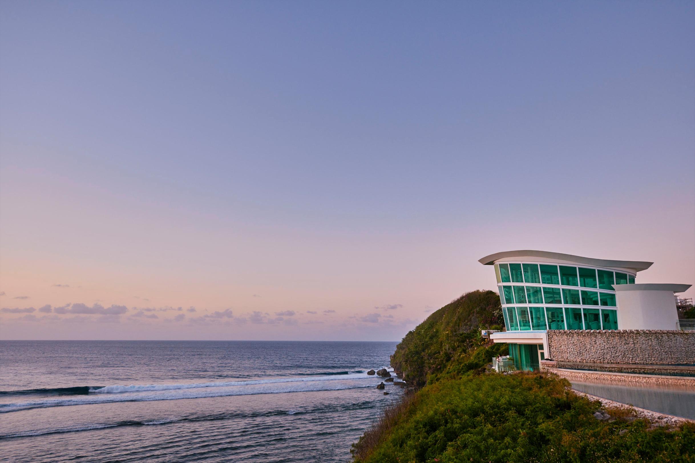青く澄んだ海と空に彩られた、敷地内で最も見晴らしのよい高台にある羽のチャペルで永遠の誓いを。