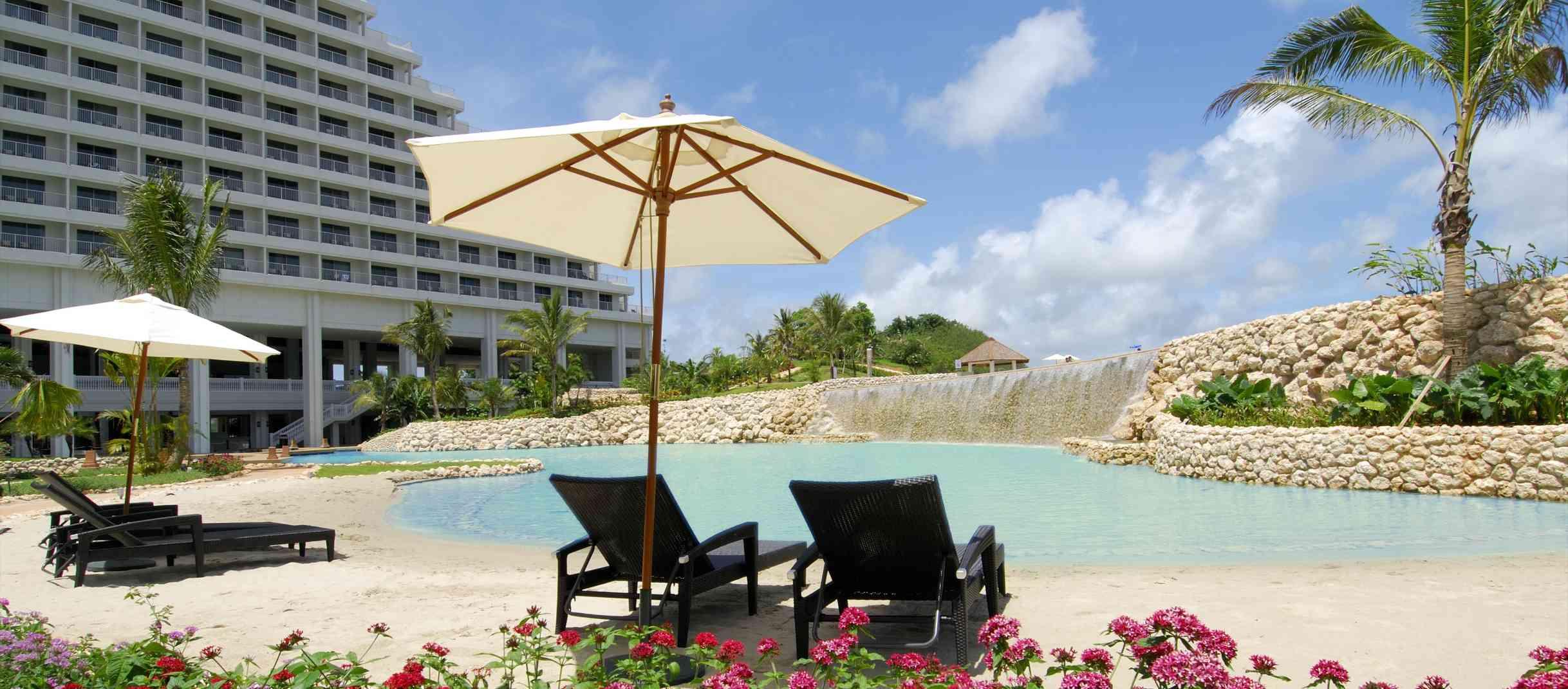 青く澄んだ海を見晴らすタムニング・オカ岬。グアムで最も美しいサンセットが望めると言われるこの地に建つのが「シェラトン・ラグーナ・グアム・リゾート」。きめ細やかなサービスに心が安らぐリゾートです。