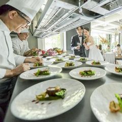 ~おもてなしのお料理をハーフコース仕立てでご提供 オープンキッチン付きの披露宴会場で試食が楽しめるから、結婚式当日のイメージが沸くはず