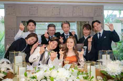 披露宴ではゲストの皆様と沢山お写真撮影いただけます。 ご友人はもちろんのこと、ご親族様とも笑顔溢れる1ショットを! 新しく家族になるご両家でスペシャルな一枚をご紹介☆ 外から自然光が入り、おふたりのお姿がより綺麗に映ってまいります!メインテーブルのお花は、専属のフラワーコーディネーターと打合せを行いおふたりのこだわりを詰め込めます! 会場内はお二人のこだわりの空間をつくりだします!!