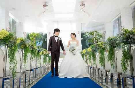 アルカンシエル南青山ではバージンロードを青色にすることもできます。 天窓から青空も見えるため相性抜群なコーディネートで人気です。 挙式前は堅苦しいポーズではなく、いつものように手を繋いで記念撮影を。 チャペル全体はグリーンで囲まれているため、南青山に居ることを忘れさせるような非日常空間となっています。