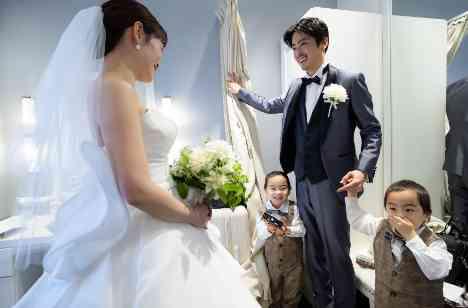 ママのドレス姿をとーっても楽しみにしていたお三方。 当日の素敵な姿に言葉が出てきません。 ご来館から挙式リハーサルまでアルカンシエルでは、一緒のお部屋で安心してお過ごしいただけます。 お子様も今日はお揃いの特別な衣装を身にまとい、パパとママの結婚式に備えます。 早く挙式が始まらないかなと楽しみでいっぱい♡