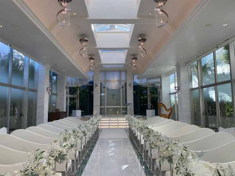 チャペルでは自然光や水の音、緑など自然をよく感じられました。チャペルも披露宴会場も明るく写真が映えそうな印象でした。