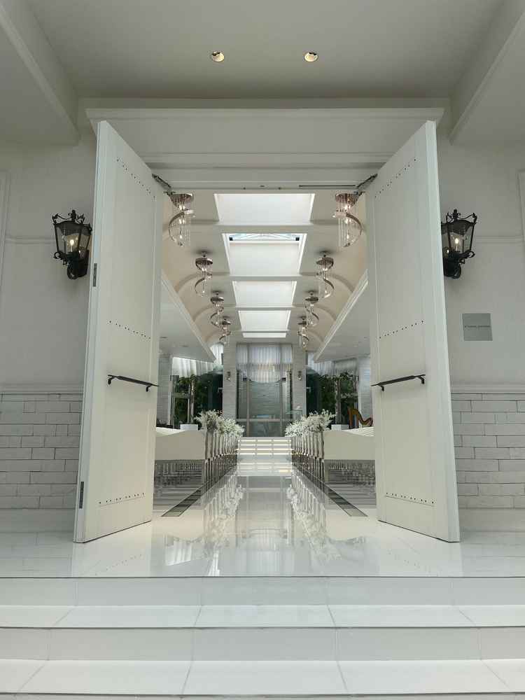 ウェルカムパーティースペースは他の式場にはない設備でチャペルからそのまま行ける動線も嬉しいポイントでした!またエレベーターも広めで移動にも良さそうでした!