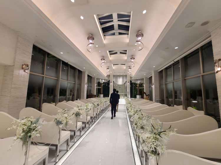 お姫様や、派手なものが好きな人には合うと思う。光も入り明るいが外はそこまで見えない。どの披露宴会場も広々している。