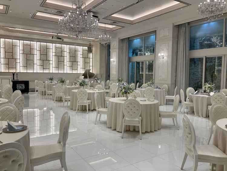 ゲストが初めて入るエントランスから控え室、チャペルから披露宴会場までの導線がシンプルでした。 1番広い披露宴会場ではプロジェクションマッピングを使った演出もできるのは珍しいと思いました。
